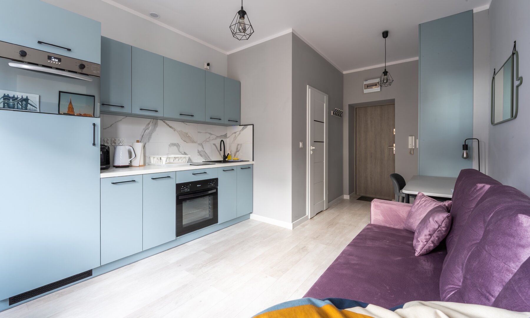 Apartament w pełni wyposażony, posiada jedną dużą rozkładaną dwuosobową sofę oraz biurko do pracy.