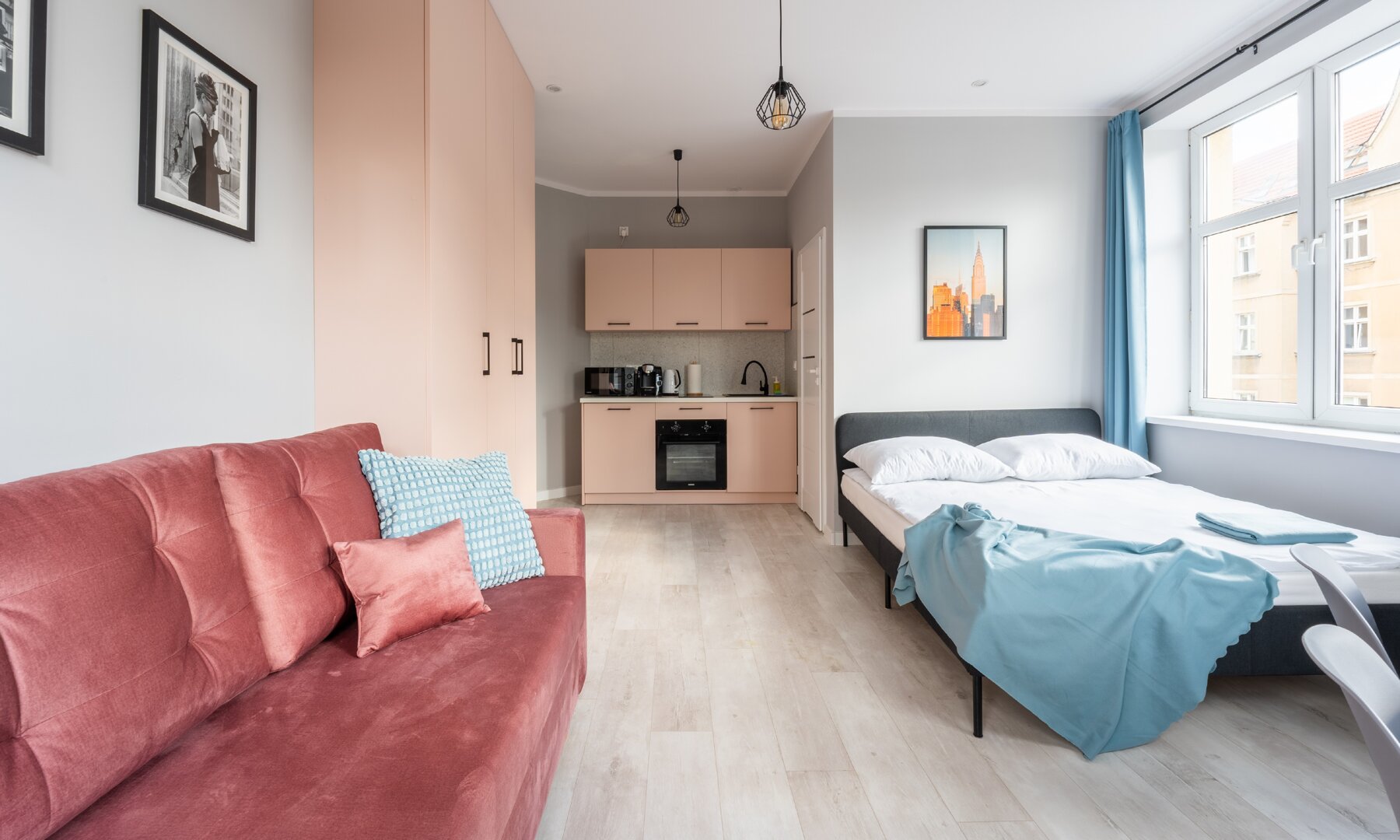 Oferujemy przytulny, jednopokojowy apartament w samym centrum Poznania. Apartament w pełni wyposażony, posiada jedną dużą rozkładaną dwuosobową sofę oraz biurko do pracy. Wszystkie najważniejsze atrakcje mamy w zasięgu kilku minut drogi piechotą.