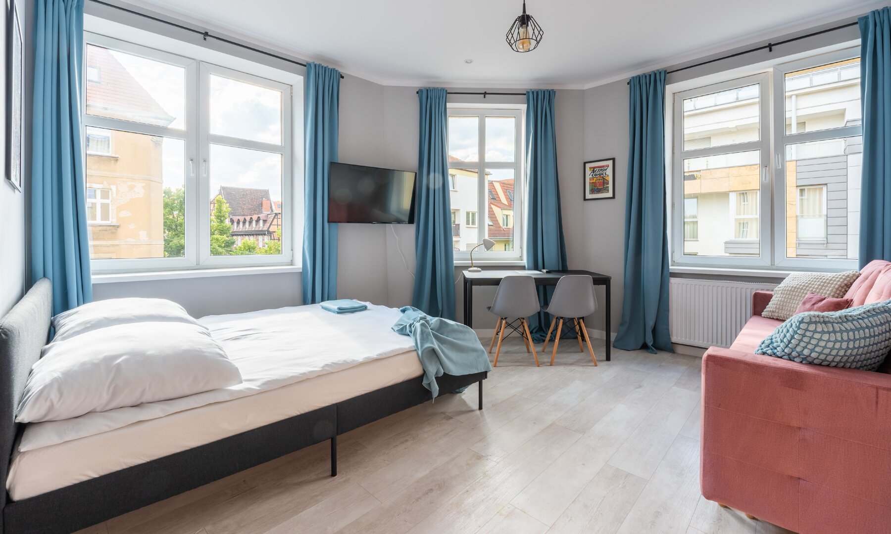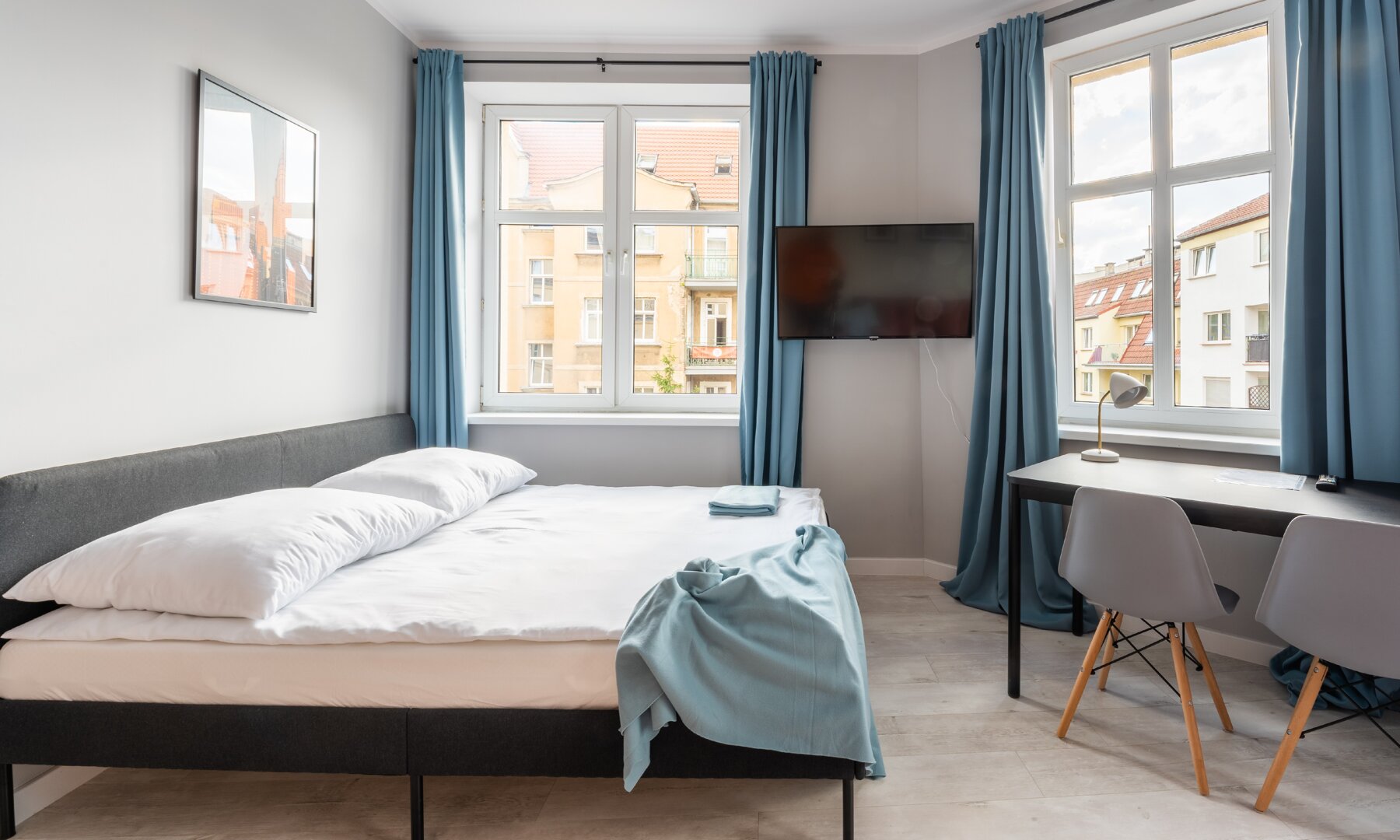 Oferujemy przytulny, jednopokojowy apartament w samym centrum Poznania. Apartament w pełni wyposażony, posiada jedno duże dwuosobowe łóżko oraz biurko do pracy. Wszystkie najważniejsze atrakcje mamy w zasięgu kilku minut drogi piechotą.