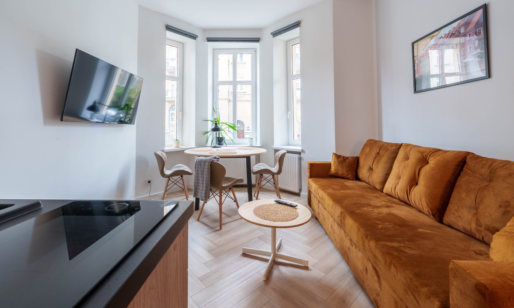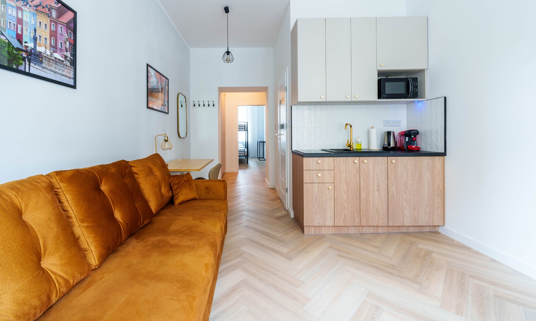Oferujemy przytulny, jednopokojowy apartament w samym centrum Poznania. Apartament w pełni wyposażony, posiada jedno dwuosobowe łóżko, dużą rozkładaną dwuosobową sofę oraz biurko do pracy. Wszystkie najważniejsze atrakcje mamy w zasięgu kilku minut dro