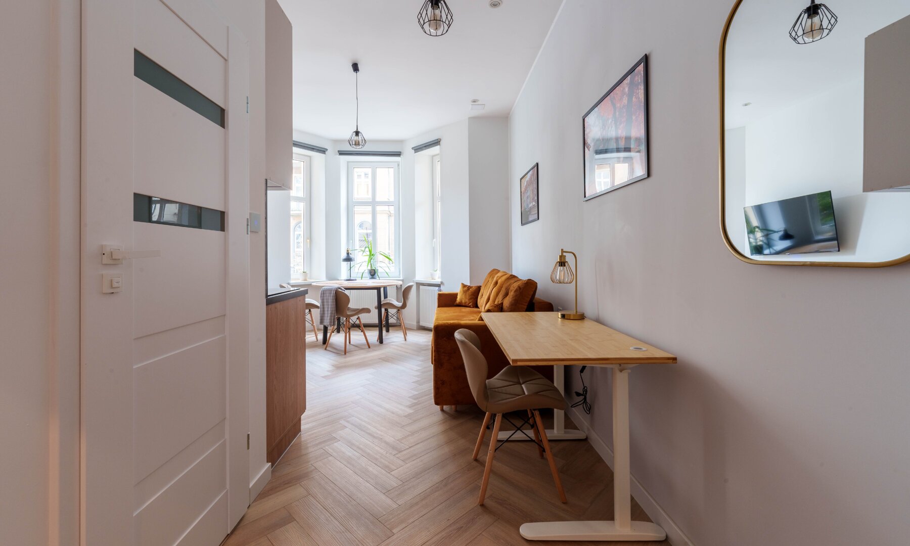 Oferujemy przytulny, jednopokojowy apartament w samym centrum Poznania. Apartament w pełni wyposażony, posiada jedno duże dwuosobowe łóżko oraz biurko do pracy. Wszystkie najważniejsze atrakcje mamy w zasięgu kilku minut drogi piechotą.